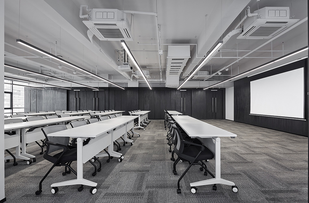 墙面以其简约的线条和充满未来感的设计语言勾勒出兼富有节奏且兼具人文感和科技感的共享立体空间。而空间里深色木地板与浅色地毯序列排布而产生的厚重感与轻盈白色天花顶的空灵相依存,轻盈且富有空间张力,进一步打造出空间的层次与韵律,提升品质感,为整个空间增添文化韵味和艺术气质。移动式家具可根据不同需求灵活布置,色调、材质延用自然纯粹的质感,实用的简约风格的设计语言,传达了思想交流和碰撞的过程。环保高效的无纸化办公系统体现出深圳的特质--效率、务实、国际化。#办公室设计装修#