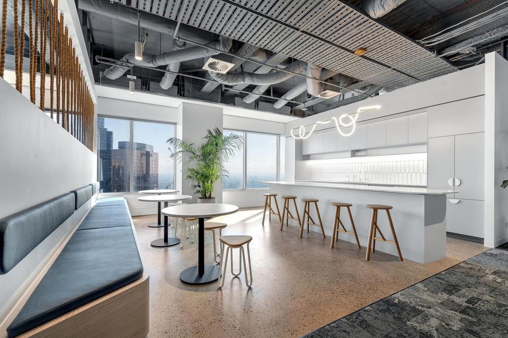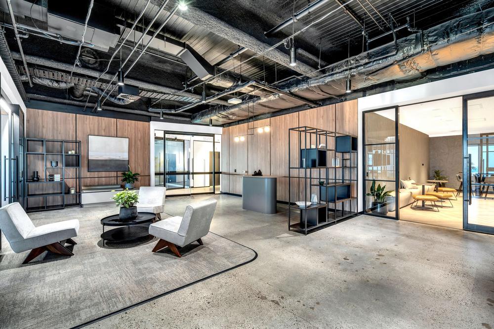 进入一个空间的第一印象非常重要,位于第一处空间的一幅大型墙画带来强有力的视觉冲击。具有时尚气息的航海元素遍及整个室内空间,营造出宁静的氛围和舒适空间体验。第二个空间采用了精致的暗调配色去展现客户多元的身份属性。简约单色调的配色加入了自然的棕褐色、木纹肌理与圆角的细节处理,暗雅却又多姿,赋予空间更多维的时尚解读和视觉体验。第三个空间则极具个性化,明亮的橙色和蓝色与大面积的白色相映衬,彰显出墨尔本创意社区的活力文化。#写字楼装修设计#