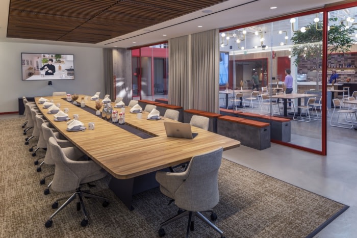 附近品酒室的设计是办公室的标志,提供了适合正在扩大规模的企业的大量用途。品酒室配备了厨房的工具和会议室的技术,作为研发空间,员工在不聚集在那里进行团队活动、分组会议和午餐准备时,可以在这里创建、测试和改进他们的产品。#广州办公室装修公司#