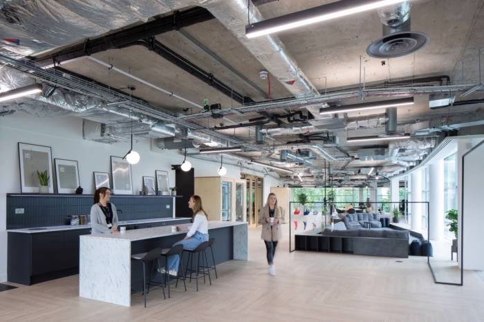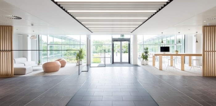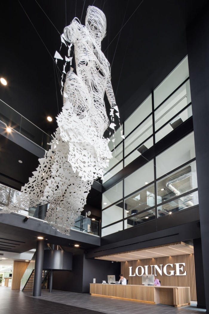 引人注目的设计充分利用了自然光、亲生物和种植,并以鼓舞人心的内部标牌和图形为特色。HQME酒廊的接待区设有接待区,其中包括令人印象深刻的视频墙和醒目的八米高轮廓纸“遗产雕塑”,独特地命名为“她”,形成了女性形态的形状,灵感来自该品牌有史以来的第一个内衣图案??腿丝梢越胄槟夤何镏行摹⒕牟呋牟氛故厩?,还有受?;さ南刍疃占?。一条带状跑道和轨道从建筑物的前部延伸到后部的室外区域,那里的鸟瞰标志座椅由 100 吨混凝土制成。大露台和休息区为工作和社交活动提供了额外的空间。#办公室装修设计公司#
