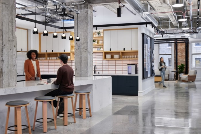 办公室装修的目标是创造一个个人和团队工作都能蓬勃发展的环境。对于个人、专注的工作,有坐立式办公桌、休息区、隐私隔间和休息区可供选择。对于协作小组工作,设计师为不同规模的团队及其需求提供小型协作区、高顶桌和会议室。这些区域灵活、适应性强且舒适。