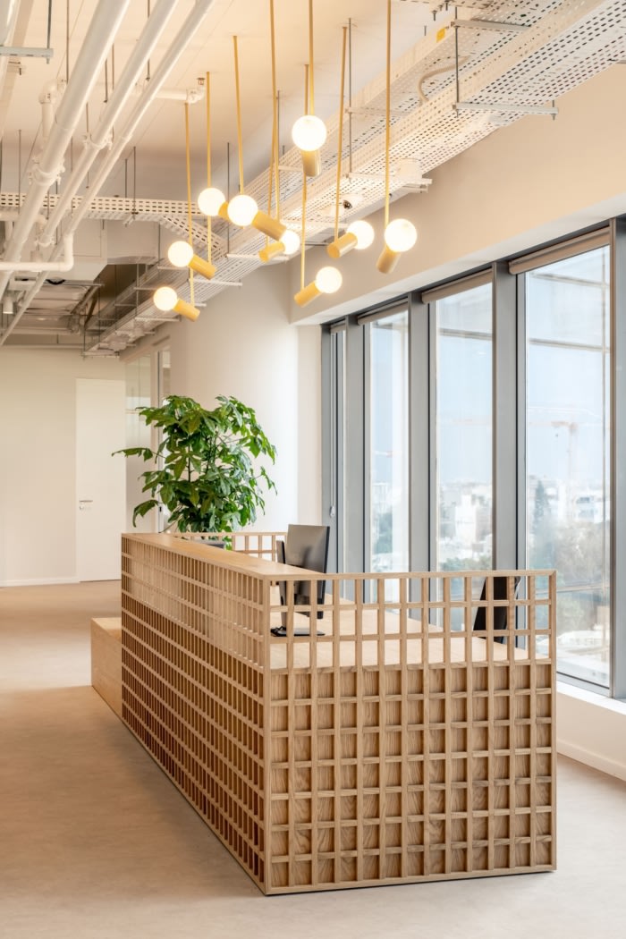 办公室装修设计:用纯白色的天花板平衡了各种纹理、颜色和材料
