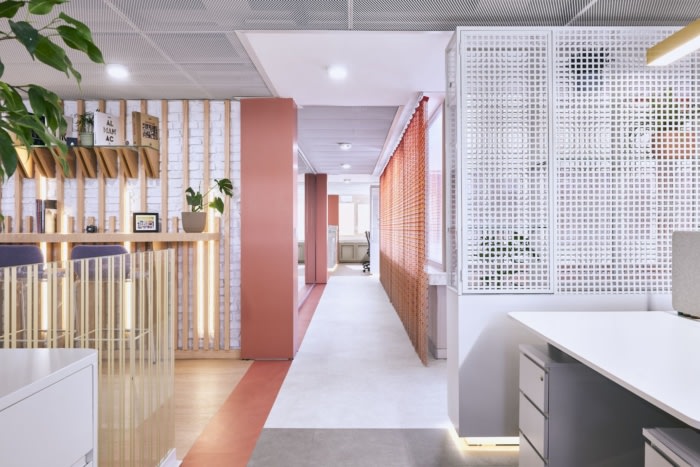 在这个鲜艳色彩占主导地位的地方,色彩场景体现在家具、照明元素、地板和墙面等基本物品中。一条多色的移动链条,用于围绕地板画廊空间的阴影;是最引人注目的例子之一。此外,建筑师更喜欢使用不同的颜色来分隔具有不同功能的部分,例如工作和休息区以及行政单元。#办公室装修设计公司#