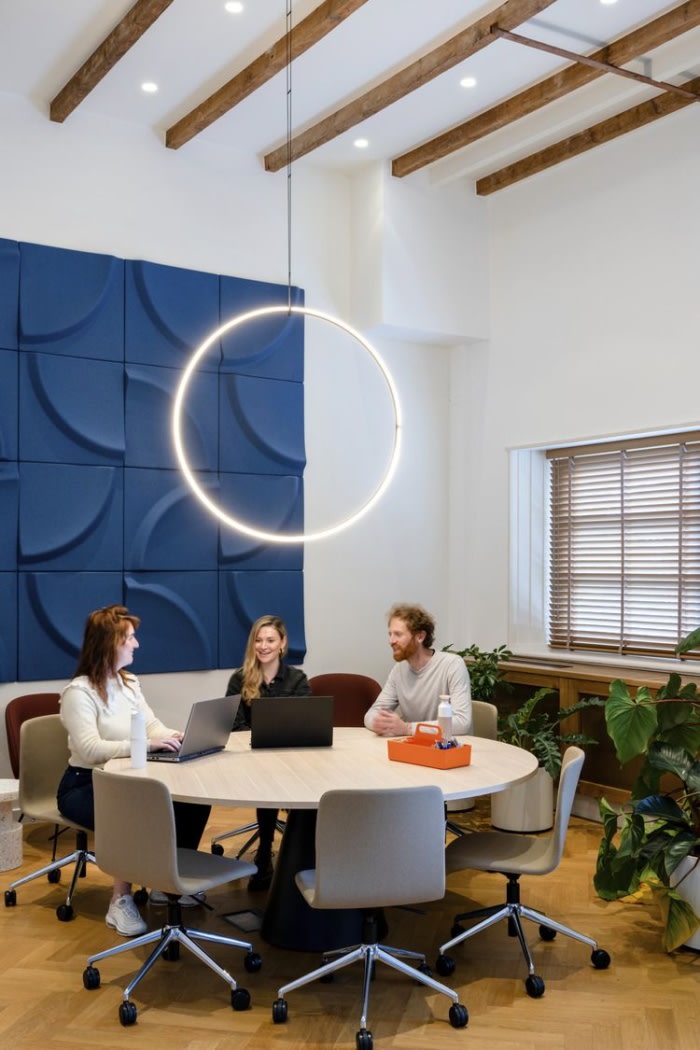 办公室设计支持通过专注于健康和款待的环境的新工作方式。该公司设计了各种会议空间,以实现创造力、协作和专注。植物休息室的中心是一个郁郁葱葱的绿色花盆。