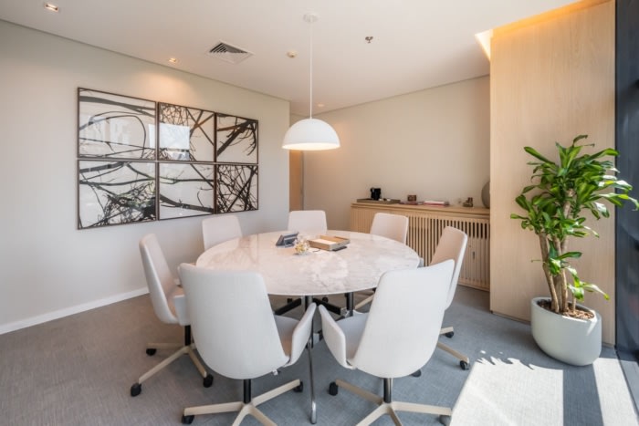 这是是一家金融公司的办公室,旨在使客户的个人生活专业化,提供重视人们最宝贵资产(即时间)的解决方案。作为一项专门迎合家庭及其业务的服务,该空间在每个细节上都经过精心设计,以传达舒适感,简洁的设计以木制细节为特色,并充分利用自然光线,在公司与客户之间建立了亲密关系,让他们感到轻松自在。#公司办公室装修设计#