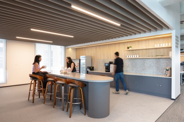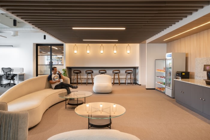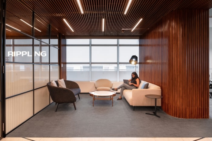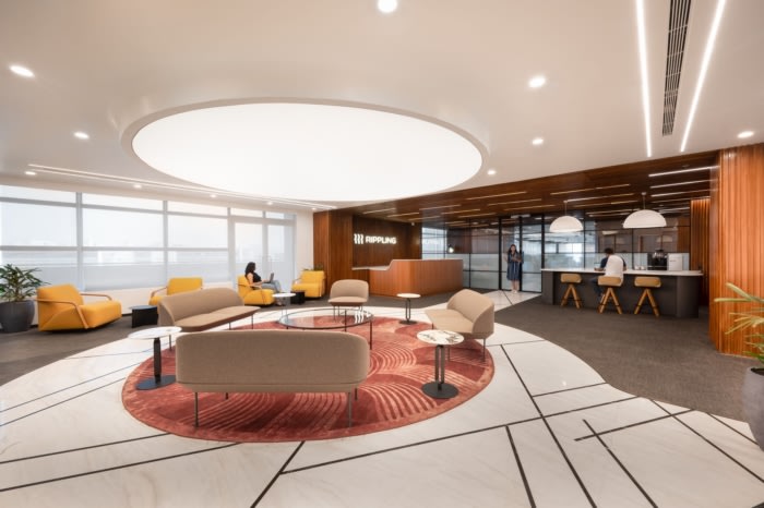 整个30,000平方英尺专门用于在不同时区工作的工程和客户服务团队。大胆而多彩的壁画表达了“团结 - 合作”以及来自各大洲的这些不同团队的聚集在一起,使涟漪成为今天的样子。#办公室空间设计#