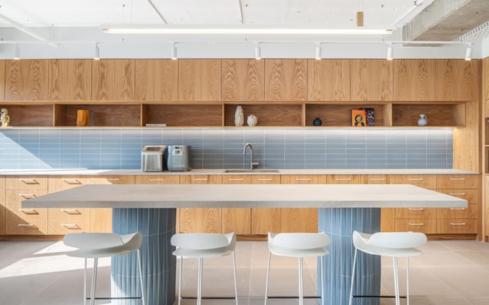 鲜艳的色彩和大而大胆的艺术品打破了传统的办公室外观,提供了时尚的触感,突出了更传统办公空间的吸引力。社区空间的设计旨在提供极致的舒适感,精心挑选的家具营造出积极的工作环境。植物被精心放置在整个空间中,营造出一种开放感,并鼓励同事之间的协作和透明。#公司办公空间设计装修#