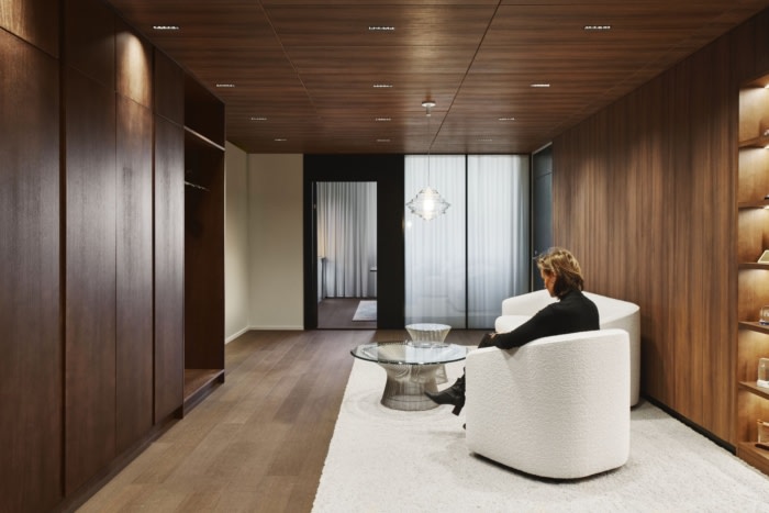 办公室设计过程首先预先确立了一些明确的原则:由于业务由投资银行和证券两个独立的部门运营,出于监管原因,空间需要在物理上分开。尽管各单位是分开的,但必须有一个大型的功能休息区,以方便每天的早餐和白天团队之间的计划外相遇。