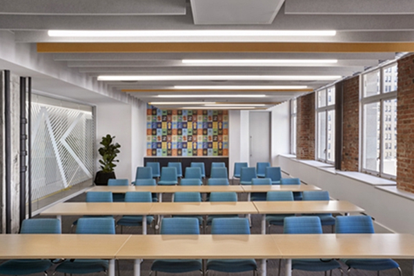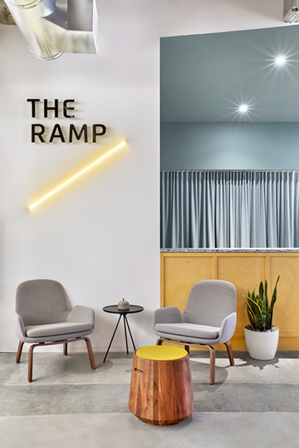 室内地砖和大窗户为工作场所提供了经典的耐力和生命力。办公室的东翼(太阳升起)采用暖色调,而西翼(太阳落山和傍晚到达)则采用凉爽的色彩。对于那些没有地理或太阳方向感的人来说,地板图形使前进的方式变得生动有趣。#办公室装修公司#