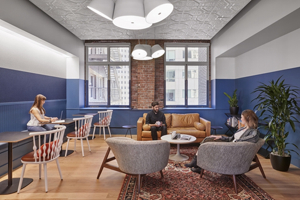 办公室装修案例:室内地砖和大窗户为工作场所提供了经典的耐力和生命力