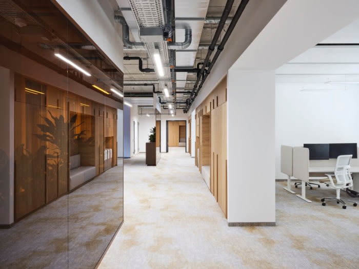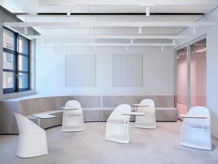 办公室室内设计:木材和棉织物等天然材料主导着大本营的周围环境
