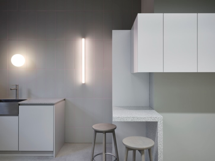“根”正是代表这些方面,并在工作区域的设计中可视化。木材和棉织物等天然材料主导着大本营的周围环境。该区域专门用于员工,员工被认为是公司背后的驱动力。通过给他们一个愉快的工作环境,应该表达感激之情。非常规的材料开发成为商标:接待柜台以及桌子和橱柜由处方纸制成。#办公室室内设计案例#