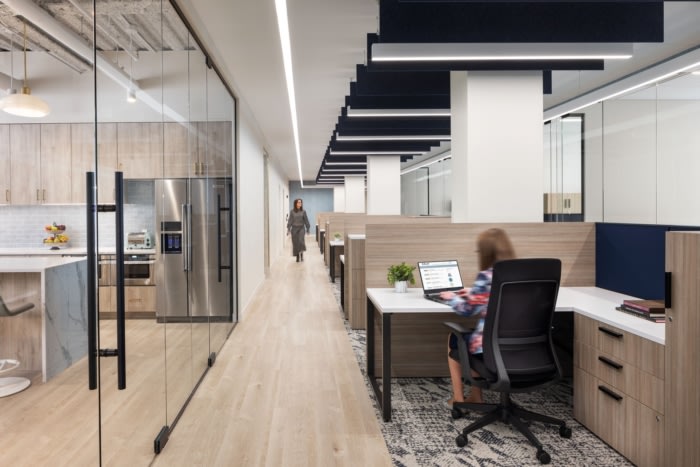 办公室装修目标是创建一个工作场所,满足年龄组和个性类型的动态组合的需求,同时保持对公司致力于客户满意度的标志的强烈关注。设计师的愿景与他们的愿景保持一致,开发了一个乐观的设计,为每天上班的员工描绘了正能量,并营造了温暖的欢迎氛围,让客户在紧张的法律程序中有宾至如归的感觉。另外,设计改善了他们的文档存储问题,并提供了更好的家具解决方案来存储重要的文书工作。