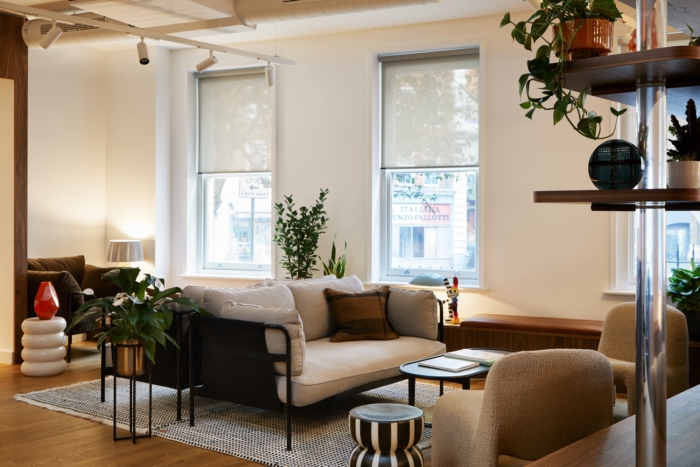 它看起来或感觉都不像一个办公室——更像是一个轻松的会员俱乐部,在各种工作环境中进行不同的活动——有些是开放的,有些在玻璃隔板后面,或者在封闭但相连的项目室内。#办公室装修案例#