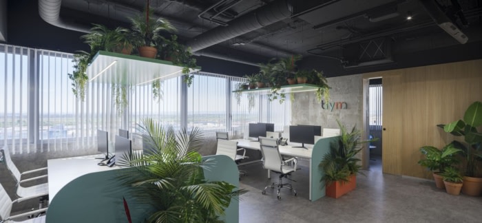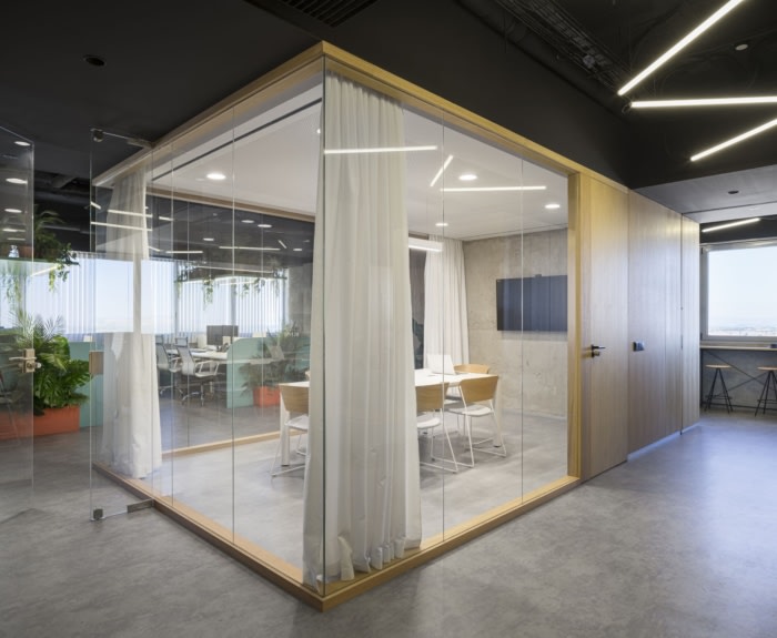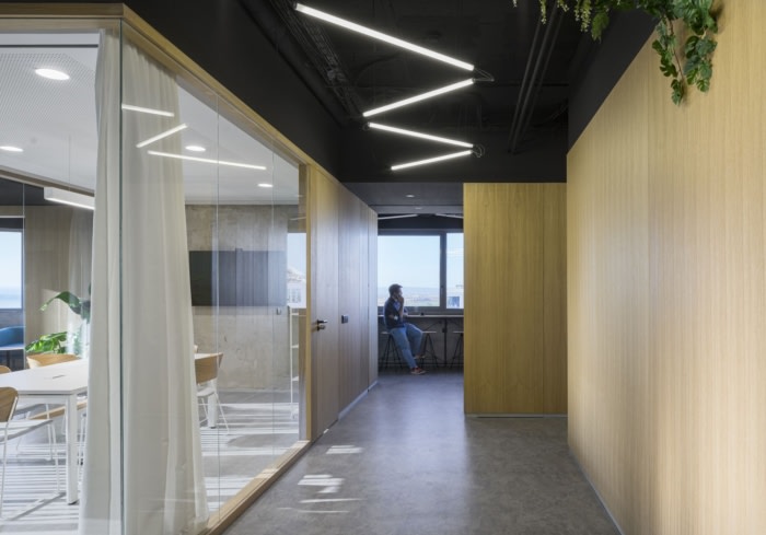 办公室内部享有城市和乡村之间的景色。通过北面和西面两个立面,阳光在整个工作日对角线进入。#办公室装修#