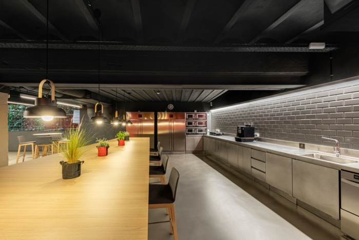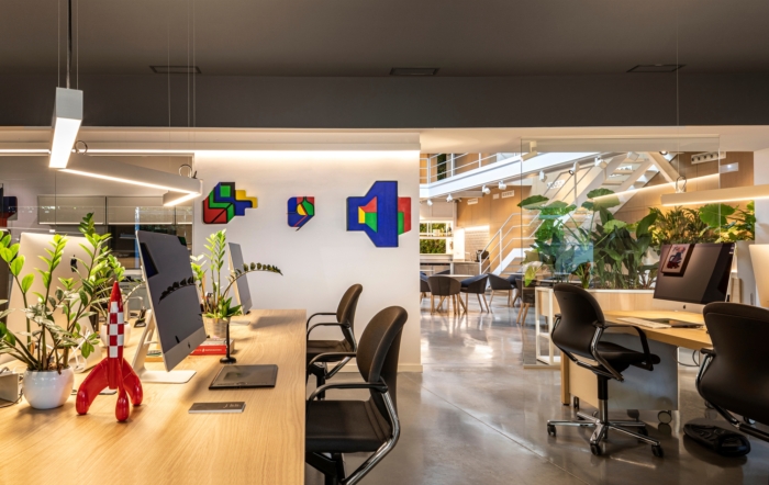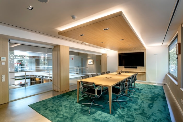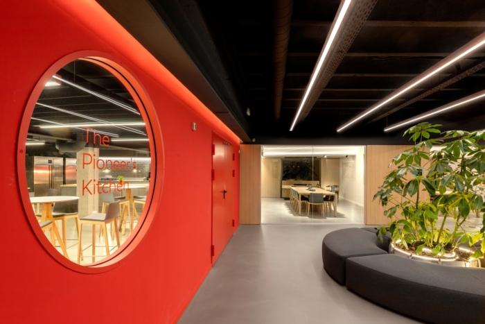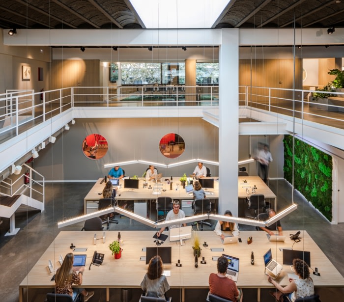 以光线和周围的自然以及核空间为标志的生命之源,其余三层楼都从中出现。这种开放和包容的垂直建筑元素设定了总部的整个结构:从会议室到组织不同团队和自助餐厅的灵活区域。巧妙地集成了顶灯,使空间向内集中,创造了一个风景优美的中心,加强了对团队至关重要的家庭感。#办公空间设计装修#