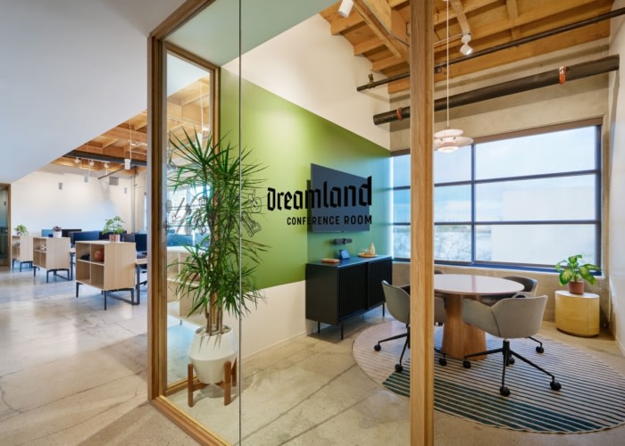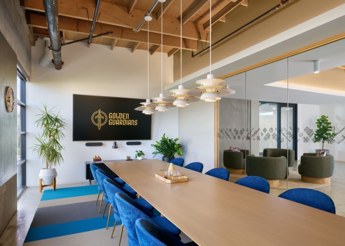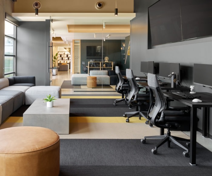 位于社区的十字路口,开放区域被设想为社区聚集在一起的“庭院”。这些灵活的空间为用餐、放松和协作工作以及举办活动和锦标赛提供了区域。位于空间中心的最先进的灵活黑匣子工作室用于录制数字内容、摄影、VR 和研讨会。#办公室装修公司#