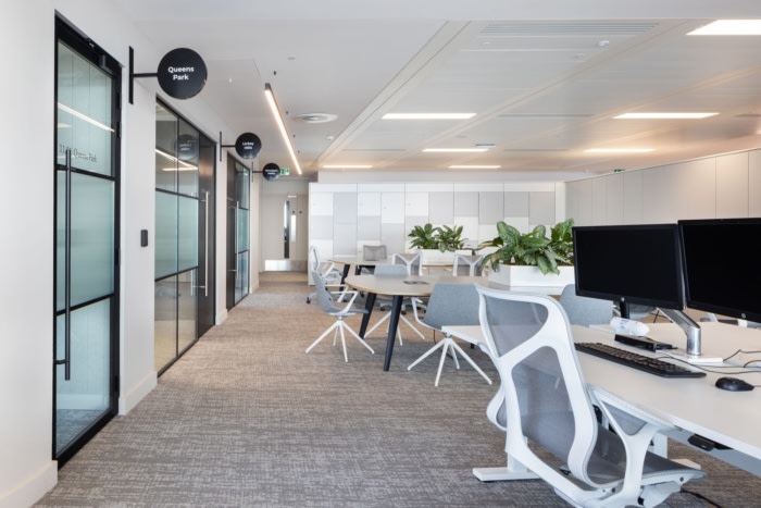 灵活的多功能空间用于支持各种活动,包括兼作活动和培训空间的市政厅区域以及用于举办晚间娱乐活动的日间咖啡吧?;嵋槭摇⒑艚胁蘸筒璧闵枋┑纳杓浦荚谕ü闵硖宀屑踩耸康男枨罄创俳菪?,安静的“舒适”区域为专注工作提供了空间——所有这些都具有最新的声学特性。#专业办公室设计公司#