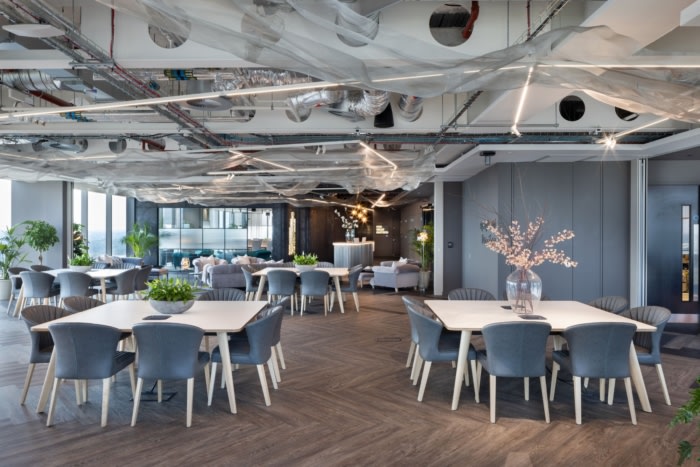 特别引人注目的是设计刺激感官的方式,触觉、嗅觉、视觉、味觉和声音都经过精心照顾。自然、精致的色调与触感舒适、毛绒天鹅绒、抛光石膏、温暖的木材和氛围照明相得益彰?;褂卸ㄖ频氖止ぜ揖咦楹?,让人们坐着或站着以满足他们的需求。#广州专业办公室设计公司#