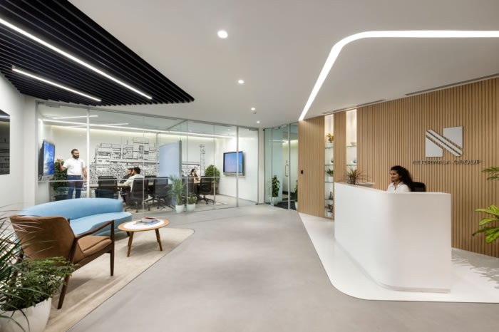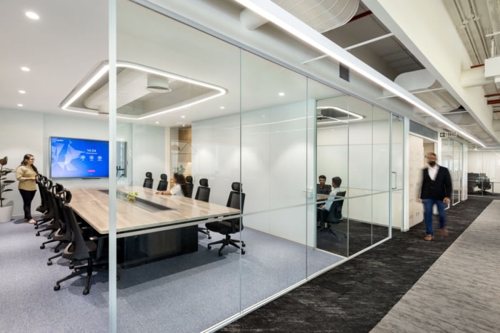 从现代设计原则中汲取灵感,办公室设计师精心打造了一种受到普遍钦佩和赞赏的美学。简洁的线条、简约的家具以及自然和人工照明的和谐融合营造出精致优雅的氛围。设计无缝融合了多元文化的元素,向公司的印度传统致敬,同时保持了全球吸引力。