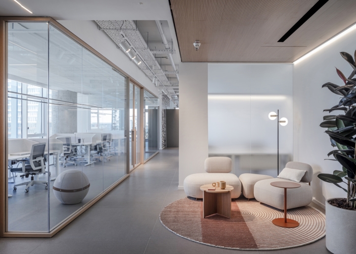 公司办公室设计装修: 在柔和色彩的精致天然材料之间创造流动