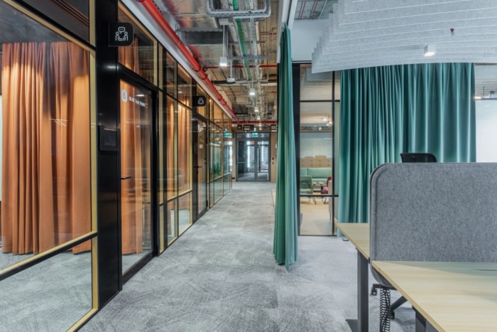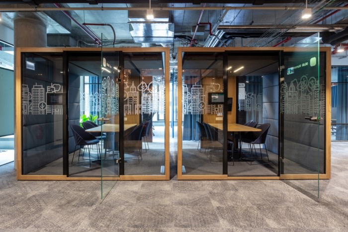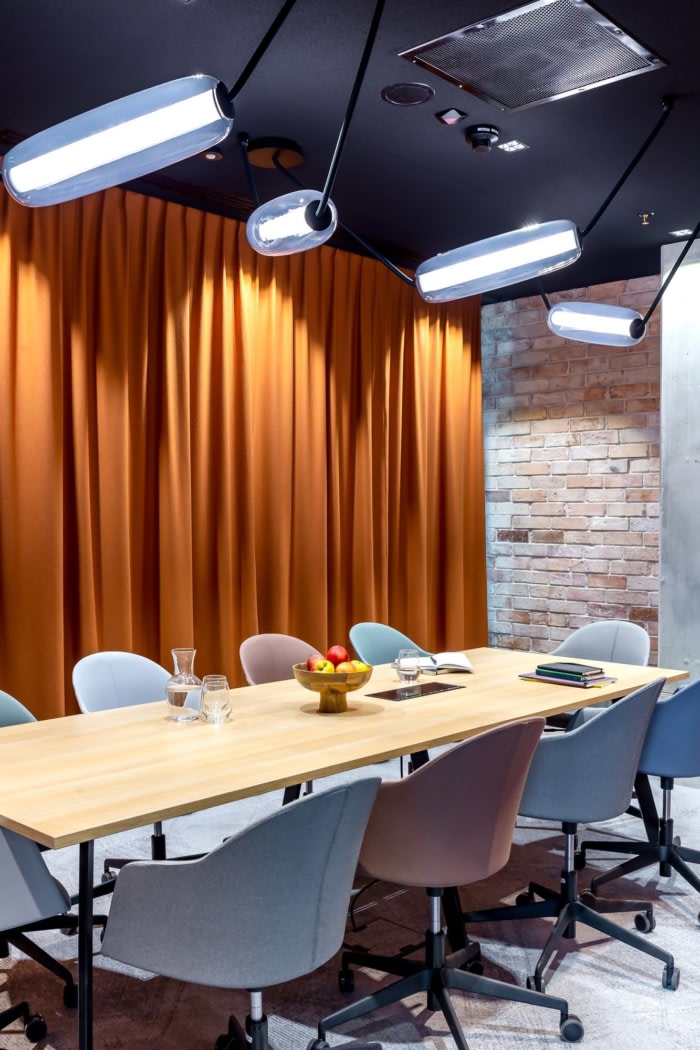 所有活动和大型会议均可在会议中心举行。它由设计灵活的会议室和两个圆形剧场组成,员工可以在等待会议的同时工作。办公室还设有单独的会议室,供团队“临时”工作,网络区域和非正式会议,可以通过移动墙分隔。专门为该项目设计和开发的是“丛林室”区域,其中有许多不同的植被,创造了特定的小气候。#公司办公室设计#
