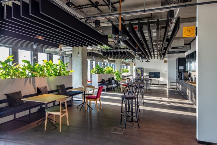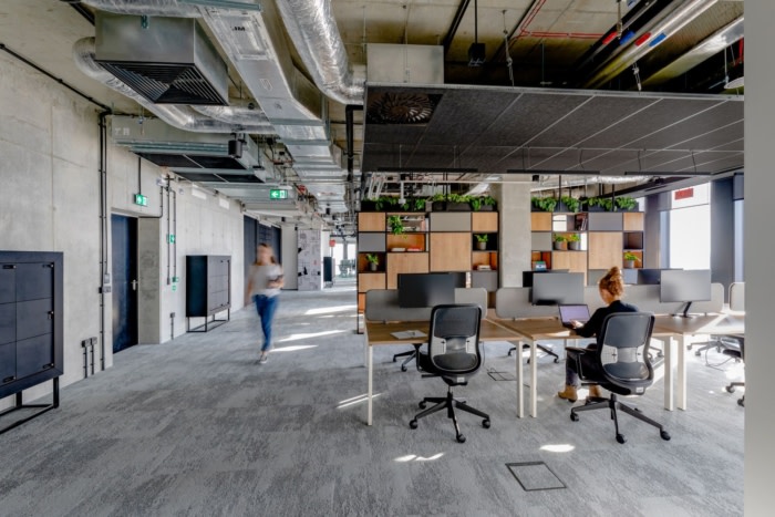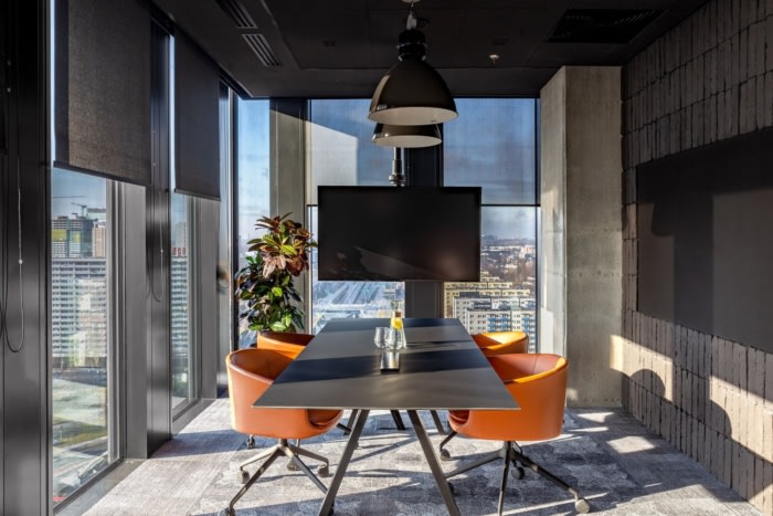 所有办公楼层的空间都光线充足,自然采光充足。因此,工业要素占主导地位的安排不会压倒一切。凭借他们的风格,他们带来了休闲的咖啡馆氛围。当然,办公室其他部分的独特元素也存在——有砖墙、黑色贴面和带肋玻璃柜正面。还有暖色调的软垫椅子和扶手椅、柔软的沙发或天然木色的咖啡桌,该设计甚至唤起了木地板上云杉图案的温馨氛围。#办公楼装修设计公司#