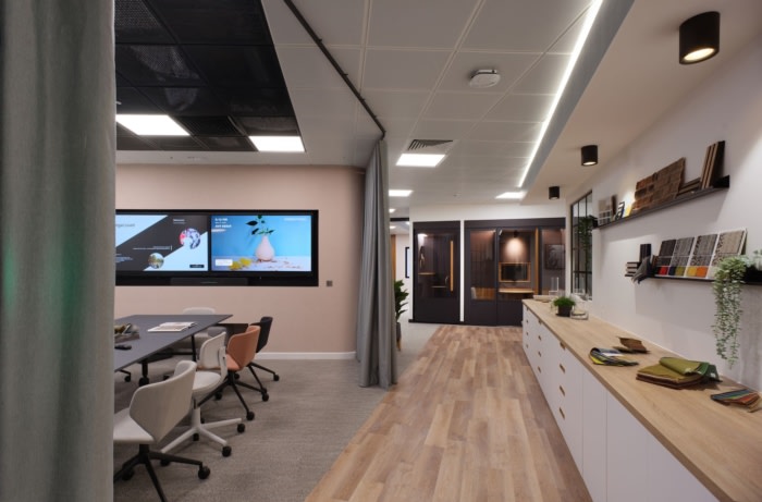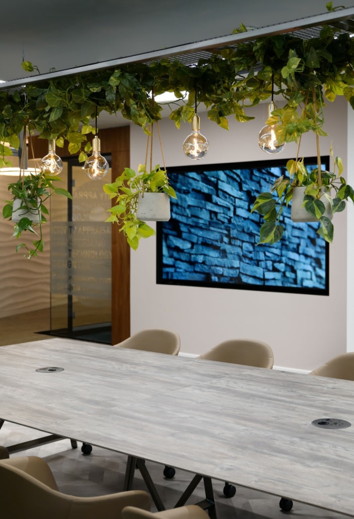 用滑动谷仓门打开分组讨论空间意味着整个团队可以聚在一起吃午饭和学习。符合人体工程学的办公桌和可调节的照明已被证明很受欢迎,使员工能够更好地控制自己的工作环境。通过中性色调、天然材料和亲生物将光与自然联系起来,将自然带入空间,营造出平静而充满活力的氛围,努力改善人们的福祉。#高端办公空间设计案例#