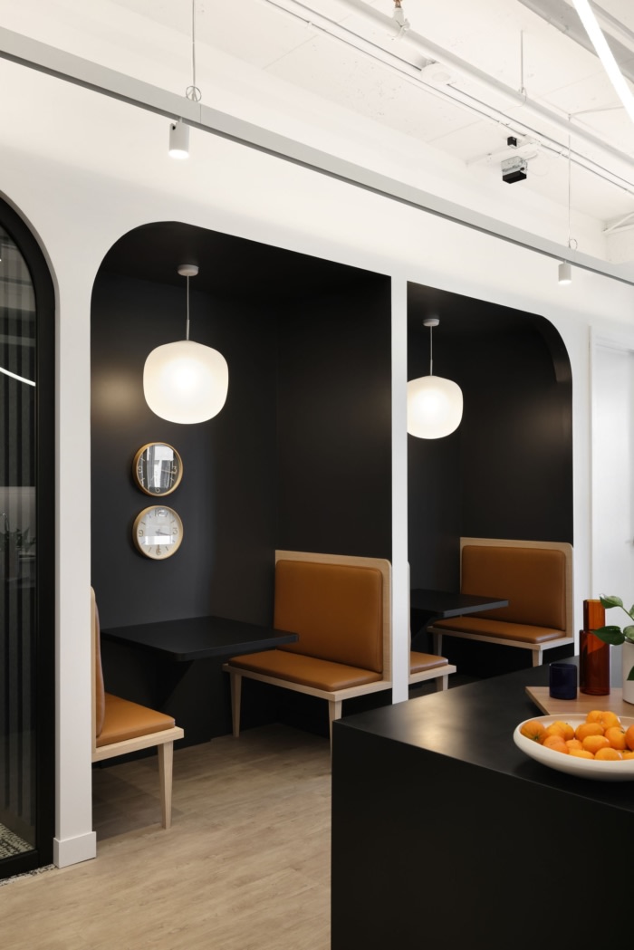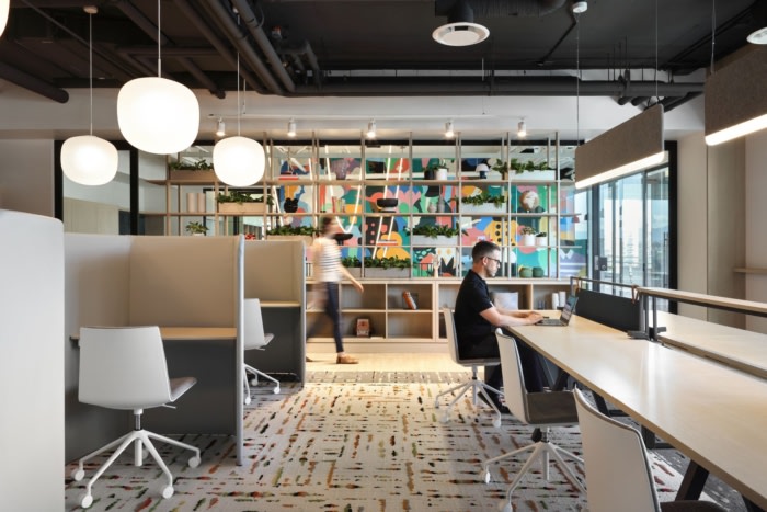 办公室设计旨在反映住宅的感觉和居家般的舒适感,以及现代办公室的设施和技术。空间围绕着一个色彩鲜艳、相互连接的楼梯,大小不一的电话室集群打破了办公室的工作点,并为集中精力提供了喘息的机会。