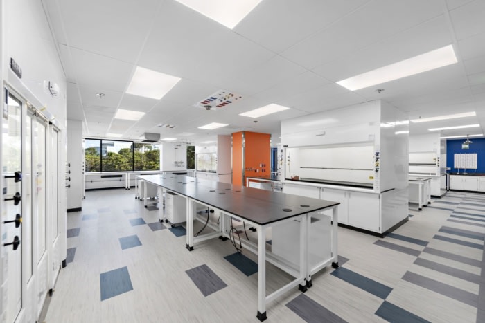 公司办公室设计:进入实验室的窗户提供了与客户参观走廊的视觉连接