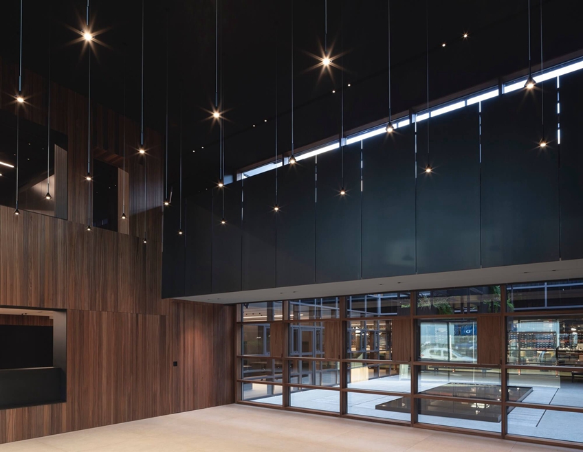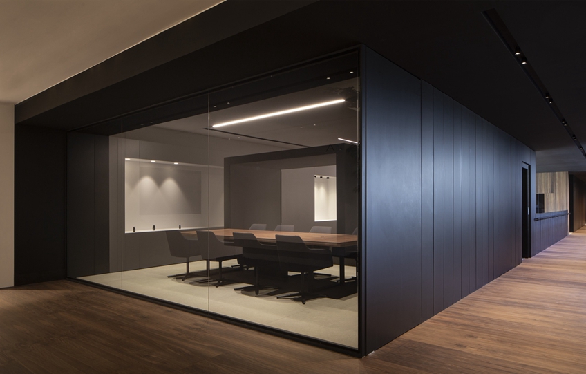 来自西班牙的一个黑色系办公空间设计,对于光的利用和角度的切入值得细讲一番,空间不仅仅是使用这么简单,它背后还包藏着艺术。无论是光线还是其他装饰品,从通高的门厅开始选用胡桃木,在不同部分布置了细长板条状的家具,让黑色钢铁作为调和融入其中,将接待桌和通行门与工作区结合。黑色有一种奇妙的质感,对于光的敏感度也对高,如果想用两种最有区别性的色彩去创造对比,这种方式非常适合了。