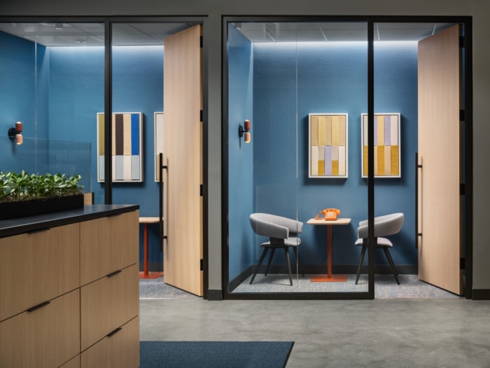 设计团队利用建筑独特的角度足迹和玻璃墙外墙,利用矩形“风车”概念来定义功能。该楼层享有剑桥、波士顿和查尔斯河的360度全景,个人私人办公室占据了周边落地窗的特定区域。定制的共享工作站、额外的办公室、多个会议室和社区空间填满了平面图的其余部分,所有这些都享有壮观的景色和充足的共享自然光线。#办公室室内设计#
