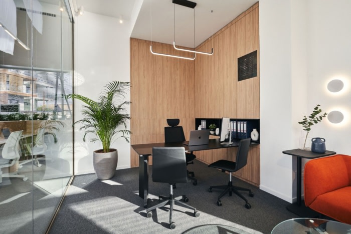 选择了浅暖色调作为配色方案,木材和石灰华石作为设计中的主要材料。这个空间没有不必要的杂乱,与永恒有关:大海、沙滩和阳光明媚的斜坡。这种环境有助于降低压力水平,提高注意力,并为认真的工作定下基调。#办公室装修设计#