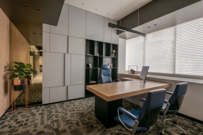 定制的办公桌和沙发、金属艺术品和个性化的搁架系统被创造出来,为定制的触感而设计,整个办公室的窗台上都有各种装饰品,包括描绘开发商著名项目的激光切割金属背光面板、金属架子和展示柜、悬挂的艺术框架和盆栽植物。#知名办公楼装修公司#