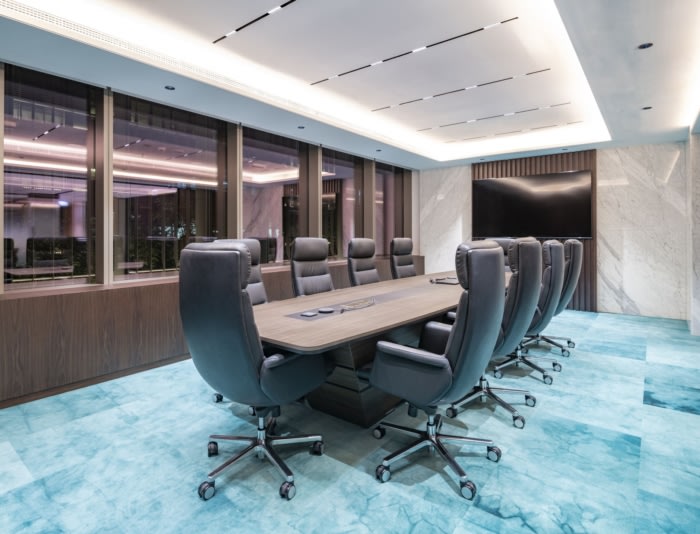 木材、豪华饰面和高端家具等天然材料被用来吸引人们对办公空间豪华外观和感觉的关注。此外,该设计反映了公司的企业文化和可持续价值观——干净、明亮和细节丰富。#办公室装修公司#