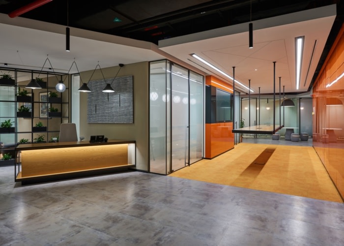 它考虑了客人到达的顺序,提供了从接待到协作空间的接待元素。遵循传统的空间规划布局,所有玻璃幕墙的办公室都沿着楼板的周边,为客人和员工提供温暖和温馨的感觉。#广州知名办公室装修公司#