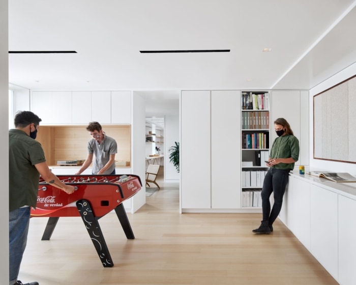 办公室装修方案:明亮的饰面、高品质的照明和空间策略掩盖了低矮的天花板 日期:2024-1-9 15:39:08 人气:316 目前的改造始于新的清白石膏外观,尽可能保留了独特的CMU阴影块。室内设计以明亮的饰面、高品质的照明和空间策略掩盖了低矮的 8 英尺天花板,将空间分解为住宅巢穴。#办公室装修#这个空间设有电视陈列室、办公室、旧货店、摩托车经销店、洗车场、健身房,甚至还有电子烟休息室。#办公室装修方案# 上一篇: 办公室设计:对比鲜明、鲜艳的调色板为空间注入了生机和活力 下一篇: 办公室装修风格:天然材料、自然色调和绿色植物与对比鲜明的口音相结合