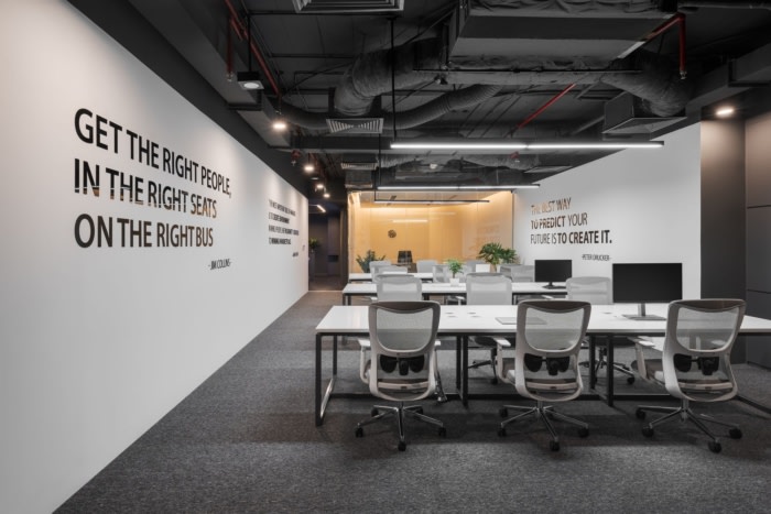 将现代设计风格与经典风格相结合时,对比一致。在一个现代、新颖和时尚的空间中,经典元素作为一个独特的亮点出现,为体验空间的人带来感官上的转变。黑色、灰色和棕色的主要色调......结合黄色金属细节,营造出神秘而强大的空间。此外,使用皮革、石材、木材等优质材料...除了经典设计风格典型的精致细致的细节外,还有助于营造豪华高贵的空间。#办公室装修设计#