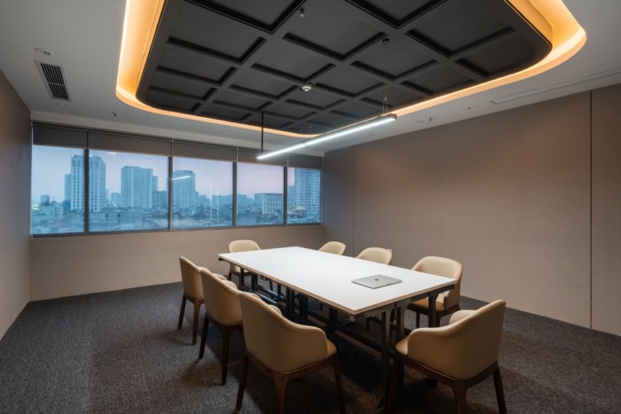 在接待大厅里,我们有这些大镜子,营造出一种反射的感觉。这是一个美丽的景象,人们走过并暂时停下来凝视自己。这几乎就像一种净化仪式或反省的机会。天花板被降低,设计复杂,具有轻微的曲线和对称性,为空间增添了额外的形式和独特性。麦宣达主席曾说,这让他想起了一座大教堂。吸音墙和天花板系统被用作声学解决方案,同时确?;嵋榭占渚哂凶愎簧杓葡附诘谋尘啊=岷匣⌒挝サ葡低?,比作大会议室空间中知识的流动,使空间更加灵活柔和。#办公室装修设计公司哪家强#