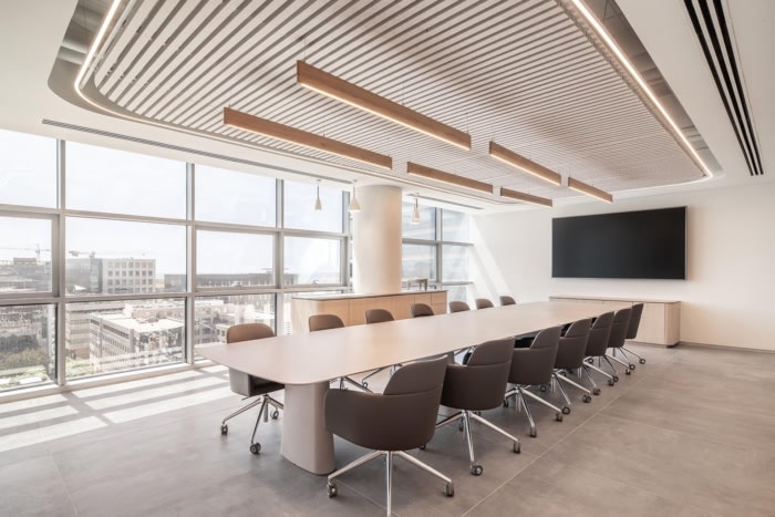 虽然该项目的设计注重美学,但它仍然是一家功能齐全的投资公司,致力于满足客户的需求。带有隔音木梁的圆形天花板和兼作走廊的艺术画廊只是反映公司致力于为客户创造一个温馨而优雅的空间的一些建筑特色。项目中使用的材料灵感来自大自然,并有沙色、绿色、白色和木材的色调,营造出一个诱人而平衡的空间。#办公室装修#