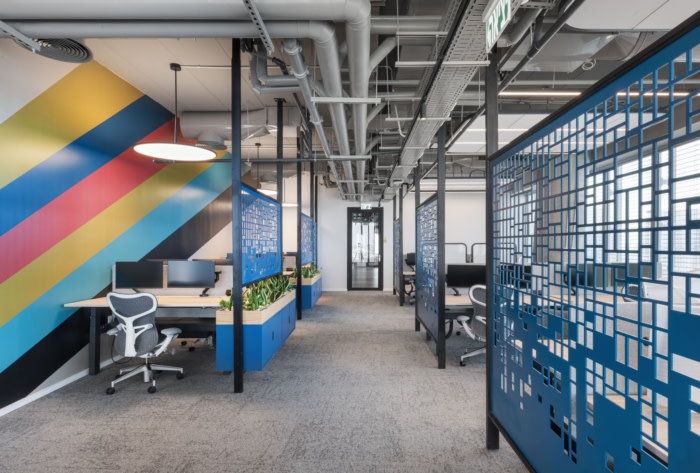 环境反映了公司的价值观,包括创新、技术、亲自然、各种材料之间的联系和鲜艳的色彩。公共区域通过楼梯在两个主要楼层之间快速连接,楼梯由裸露的黑铁制成,楼梯附带的裸露混凝土墙上绘有壁画。#广州办公室装修公司哪家好#