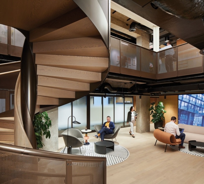 公司办公楼装修:空间的核心是一个定制的钢制楼梯 与现代优雅色调相得益彰