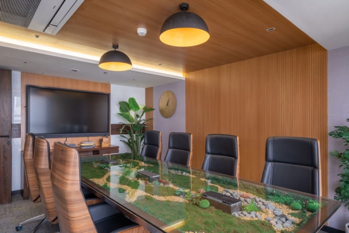 办公室的鹅卵石地板和无鞋文化有助于营造空间的禅意花园感。它已成为办公室人员中非常受欢迎的空间,这个空间是整个办公室的绿色心脏。在这个空间里,重要的讨论正在进行,同时在“搭便车”上轻轻摆动,这证明了轻松和非正式的工作文化,从而提高了生产力。#办公室装修公司哪家好#