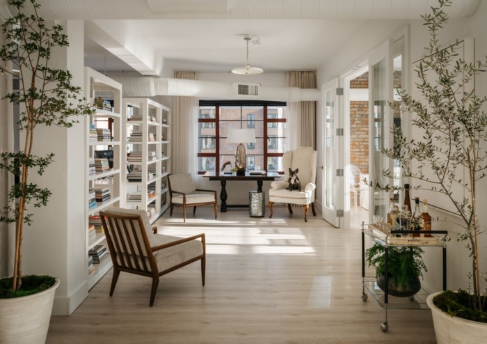 该工作室以前的办公室位于一个失去光彩的社区。他们开始寻找一个新的空间,作为一个舒适的家外之家。这个由16人组成的工作室有几个要求:它需要位于城市的中心,拥有充足的自然光和流动的能量——一个开放的阁楼,在光线的照耀下,将成为一个充满古董、艺术和音乐的家。#办公室设计装修公司#