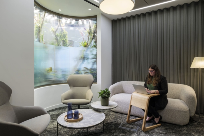 办公室设计:扇贝边缘的定制细木工制品和定制的钟乳石灵感灯参考自然颜色和纹理 日期:2024-4-9 15:49:52 人气:637 从沙子和海蓝色到涟漪效应的玻璃和墙壁处理,扇贝边缘的定制细木工制品和定制的钟乳石灵感灯,许多定制的固定装置和特色都参考了百慕大自然环境的颜色、形状和纹理。#办公室设计#该企业办公楼装修的第二个要求是确保高质量的工作环境,只指定具有超低或零挥发性有机化合物排放的材料和饰面,包括油漆饰面、粘合剂、密封剂、地板、隔音材料、家具和家具。#办公室设计公司# 上一篇: 公司办公室设计装修方案:鲜艳的色调是整个办公室餐厅营造动态氛围的首选 下一篇: 办公室装修设计:专注于木材的保暖贡献 为员工营造了舒缓的氛围