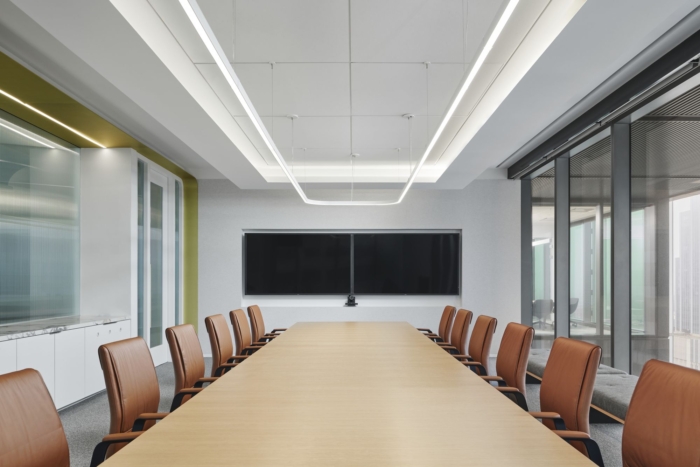 “扎根”的元素以正宗的当地材料为基础——石头、大理石和木材——参考了公司的诚信和实力?!熬隆钡脑馗泳潞土榛睢岷偷那?、间接照明和纹理——与该组织平易近人的文化相得益彰。这种动态组合使用黄铜和温暖木材的材料调色板,以及流行色彩,象征着力量、温暖和能量。#办公室空间设计#