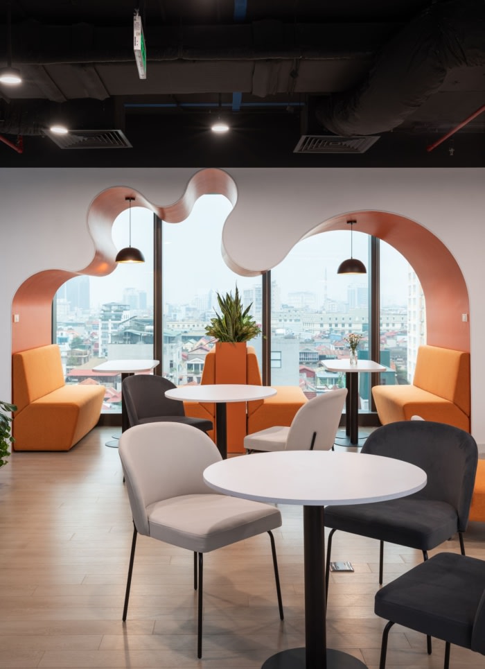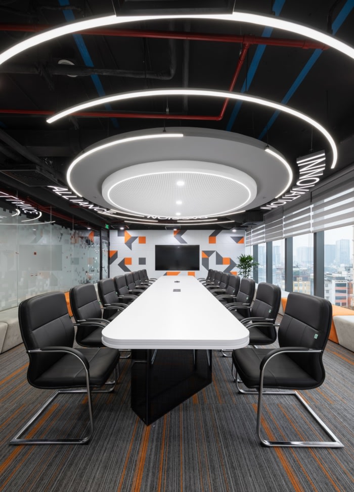 橙色和黄色既充满活力又引人注目,非常适合给人留下深刻的印象。为了在进入空间时营造出平衡和愉快的氛围,设计简化了形状和线条的使用。从火山喷发的强大形象中汲取灵感,通过使用轮廓线在设计中融入了巨大的熔岩流。该元素主要体现在办公室的多功能区域。#广州办公室装修#
