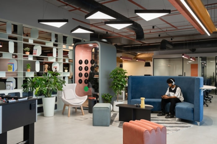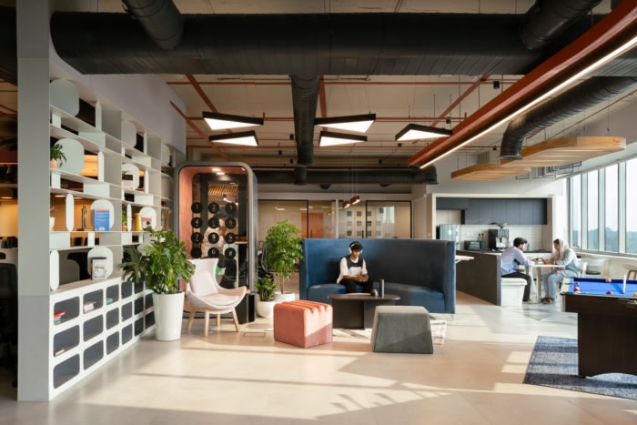 各种大小的会议室、会议室、电话亭以及人们可以与同事进行社交和交流想法的游乐区和工作咖啡馆,邀请人们为手头的任务选择最合适的工作站,使员工能够全天获得最大的舒适度, 此外,还强调了天然室内植物的存在、有机材料的使用、纹理和图案,注意空间的声学性能,房间的自然采光,中性色调的选择以及暖色调的细微差别,这有助于营造积极、温馨和恢复活力的氛围。#公司办公室装修设计#
