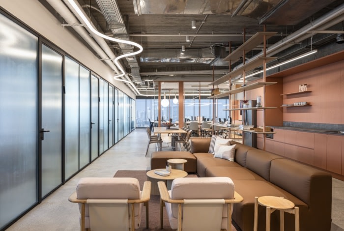 办公室布局区分了“私人”和“公共”空间。私人区域是员工个人房间的所在地,而中央的“公共”区域则是办公室的活力中心。这个中央枢纽包括一个宽敞的休息区、一个公共厨房、一个用餐空间和一间会议室,是员工之间经常协作的理想场所。#公司办公室装修#