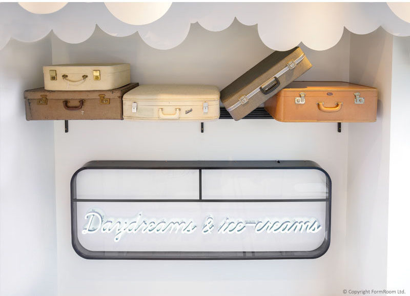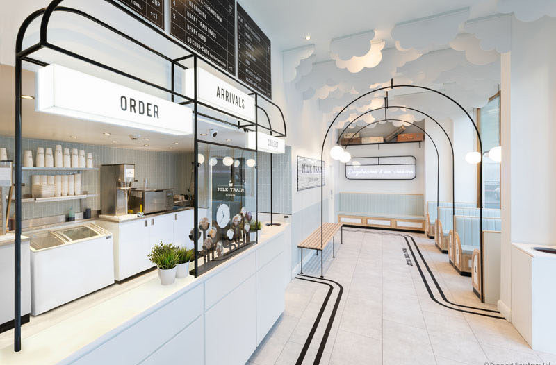 第一反应是做奶制品的公司如果是这样多好,办公室设计方案主题如果是牛奶列车,想象一下在这样的环境中上班,会有度假的心情吗?正儿八经介绍一下这个漂亮的地方,这是位于伦敦的Milk Train冰淇淋咖啡小店,有趣、优雅、精致、迷人,谁不想去这间冰淇淋咖啡馆试试呢。